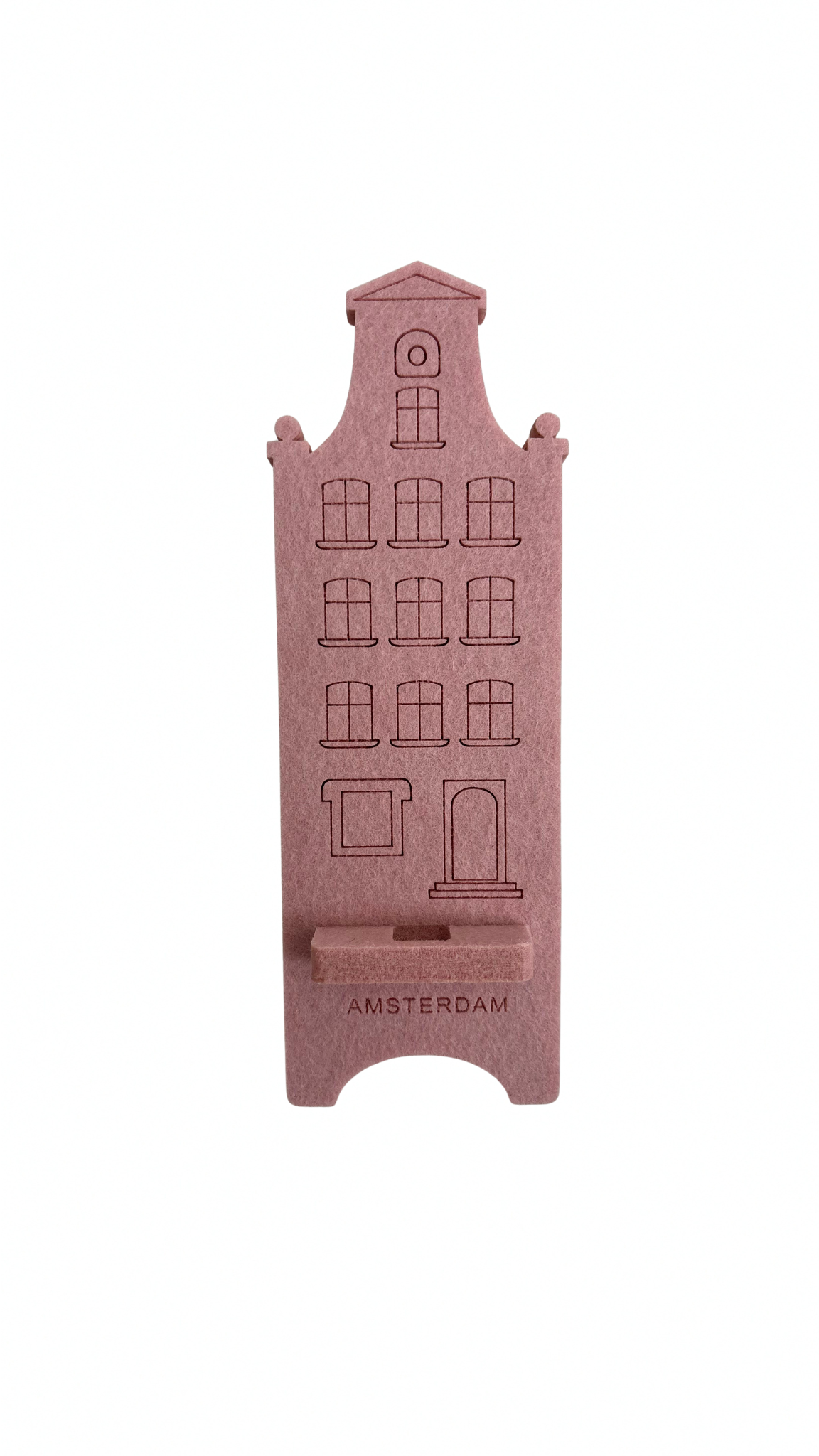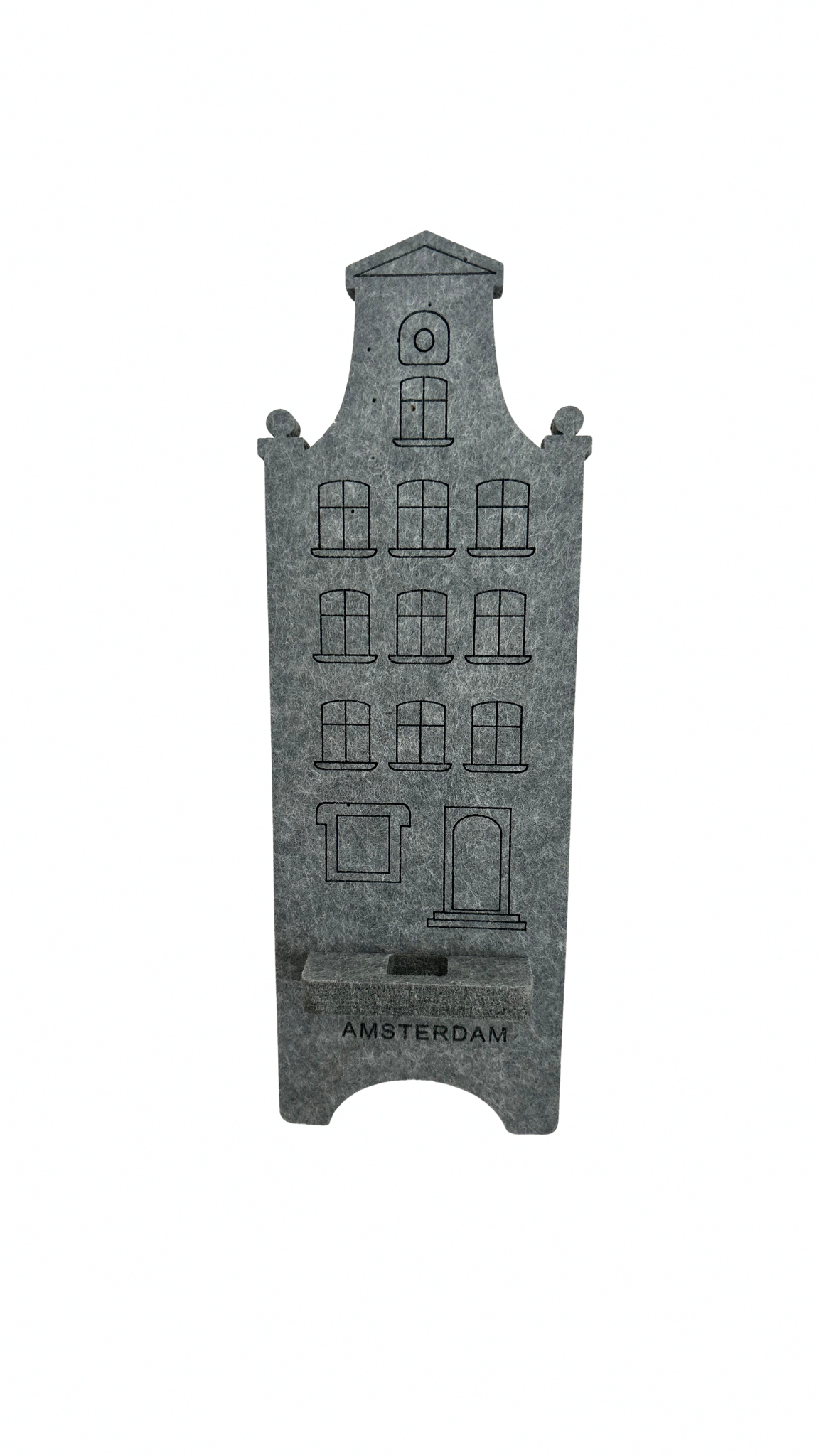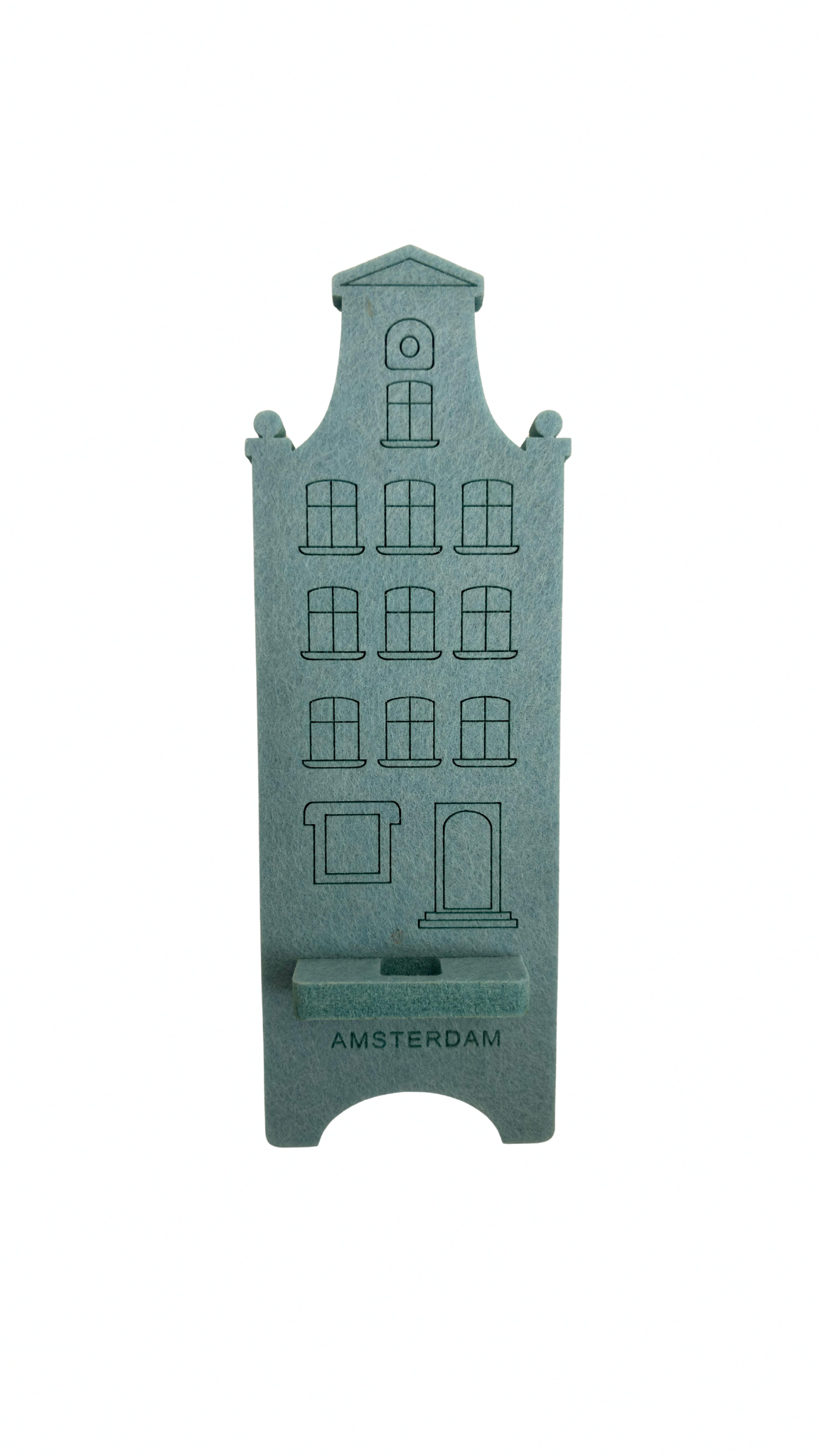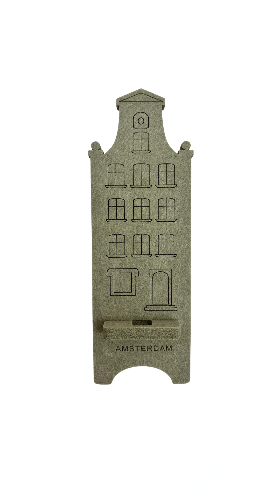 These phone stands are a functional, stylish, and sustainable addition to any desk, nightstand, or simply on the table. The phone stands are shaped like a typical Amsterdam canal house with Klokgevel (Bell Gable) roof.