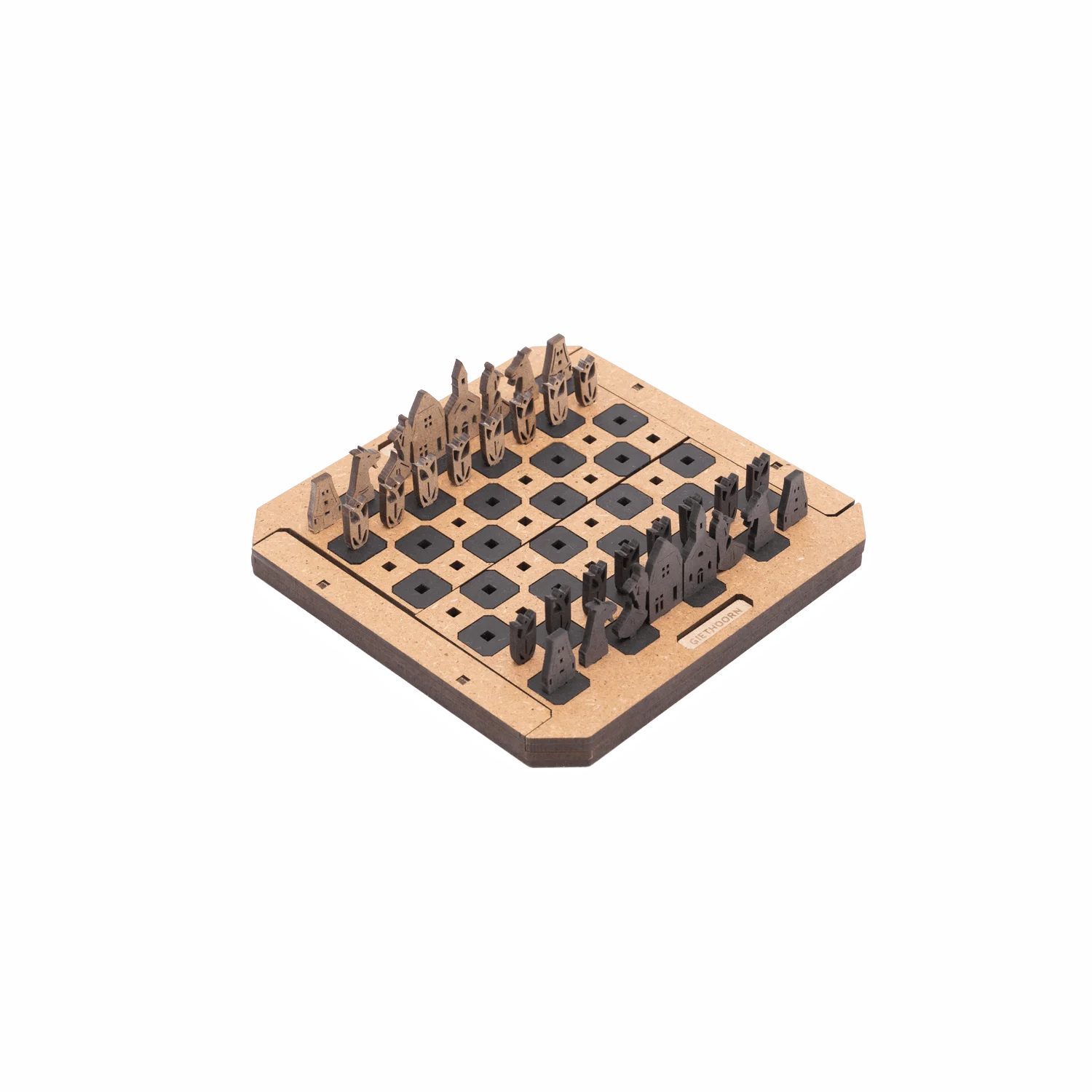 The Giethoorn City Chess Set features pieces inspired by iconic landmarks like the historic thatched-roof houses and charming canal bridges, celebrating the village’s serene and picturesque heritage. Its compact board includes built-in storage, making it ideal for travel or display. Crafted from premium materials, it’s a unique keepsake for chess and Giethoorn enthusiasts alike.